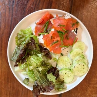 Salmon Lox & Salad Veg: add on buttered or avocado toast and cucumber slices with pepper