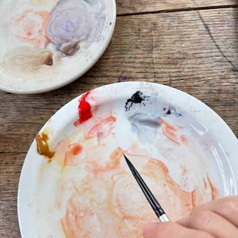 But holy smokes, talk about learning to surrender your control! You can go after an idea and concept, but ultimately the paper, pigment and water are always gonna do what they wanna do. I think it's an interesting stepping stone into a new freer expression and I'm going to keep playing with it and see what comes up for the next one. And then I might consider doing commissions.